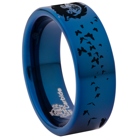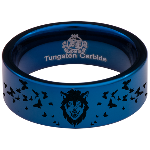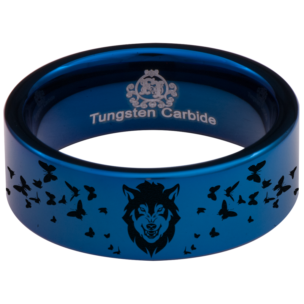 Wolf and Butterfly Tungsten Carbide Ring (Blue)