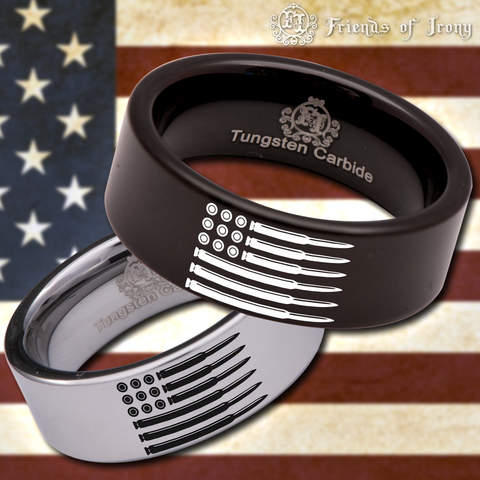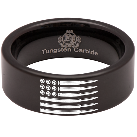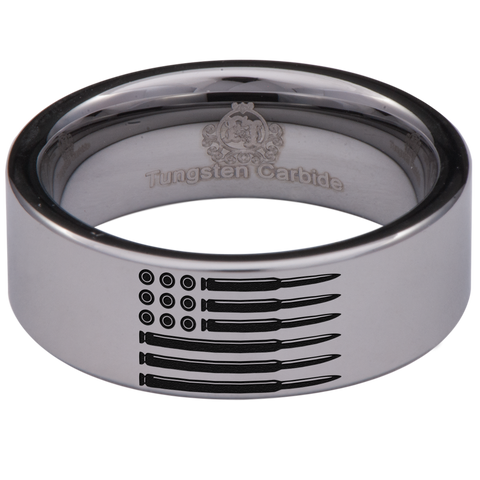 Bullet American Flag Military Tungsten Carbide Ring