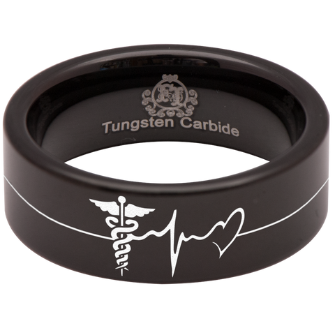Caduceus Hope And Love Nurse Tungsten Carbide Ring