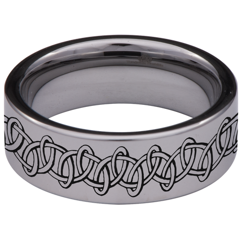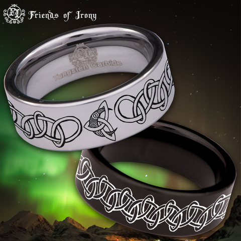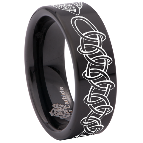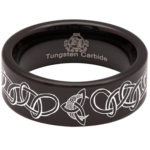 Celtic Trinity and Crescent Moon Tungsten Carbide Ring
