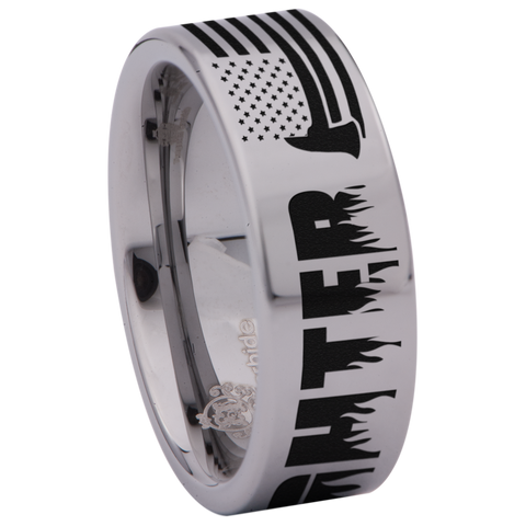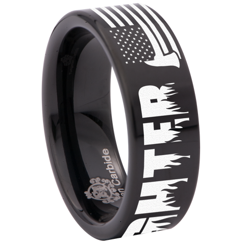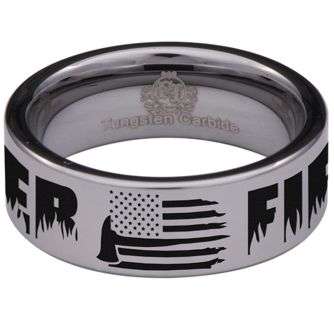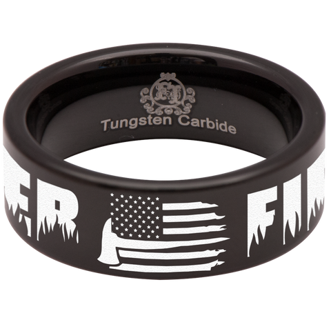 Firefighter Axe American Flag Tungsten Carbide Ring