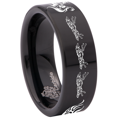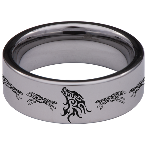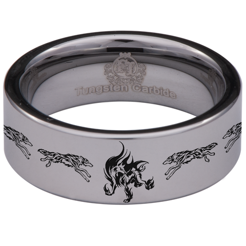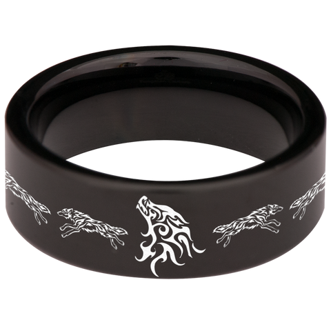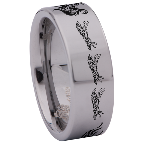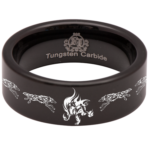 Flaming Wolf Tungsten Carbide Ring