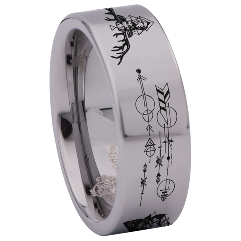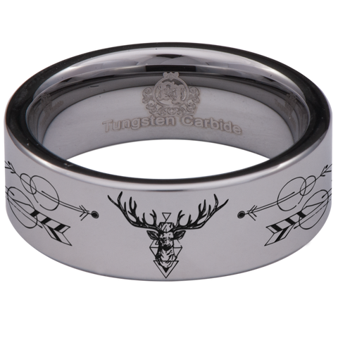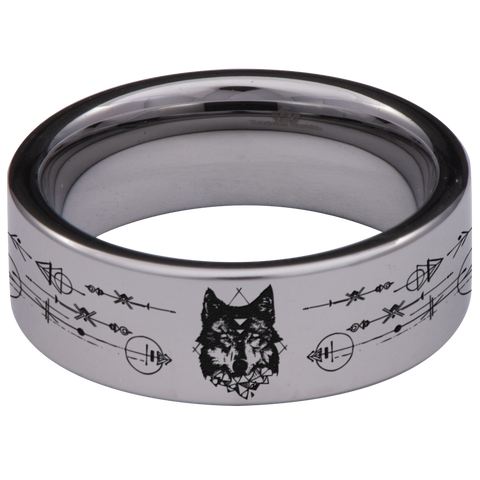 Geometric Wolf and Deer Tungsten Carbide Ring
