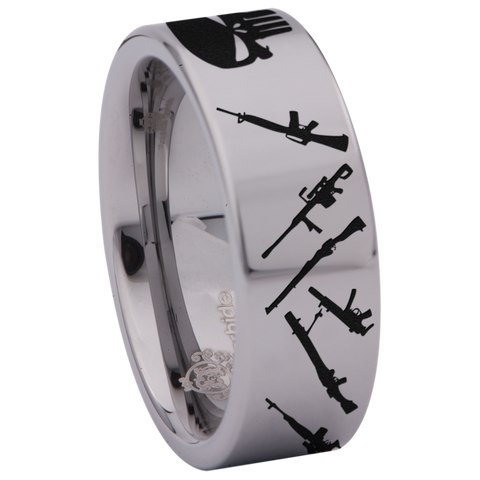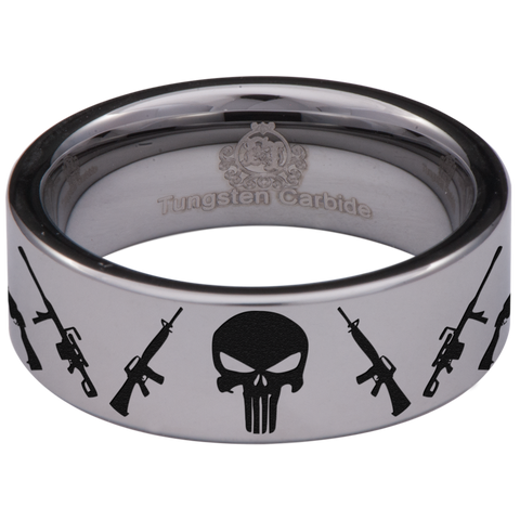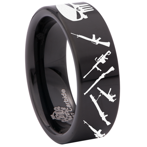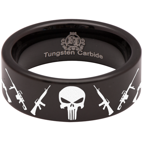 Guns and Skull Tungsten Carbide Ring