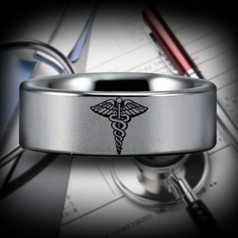 Medicine Symbol Tungsten Carbide Ring