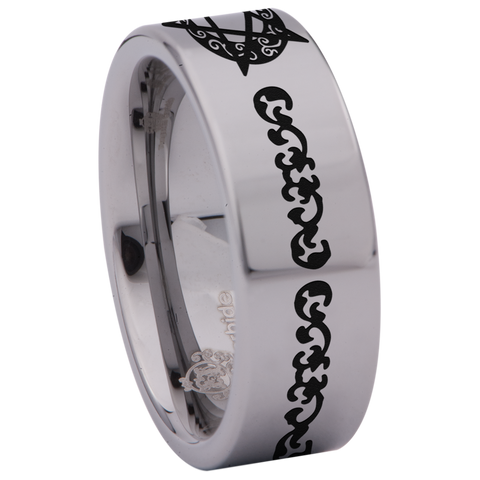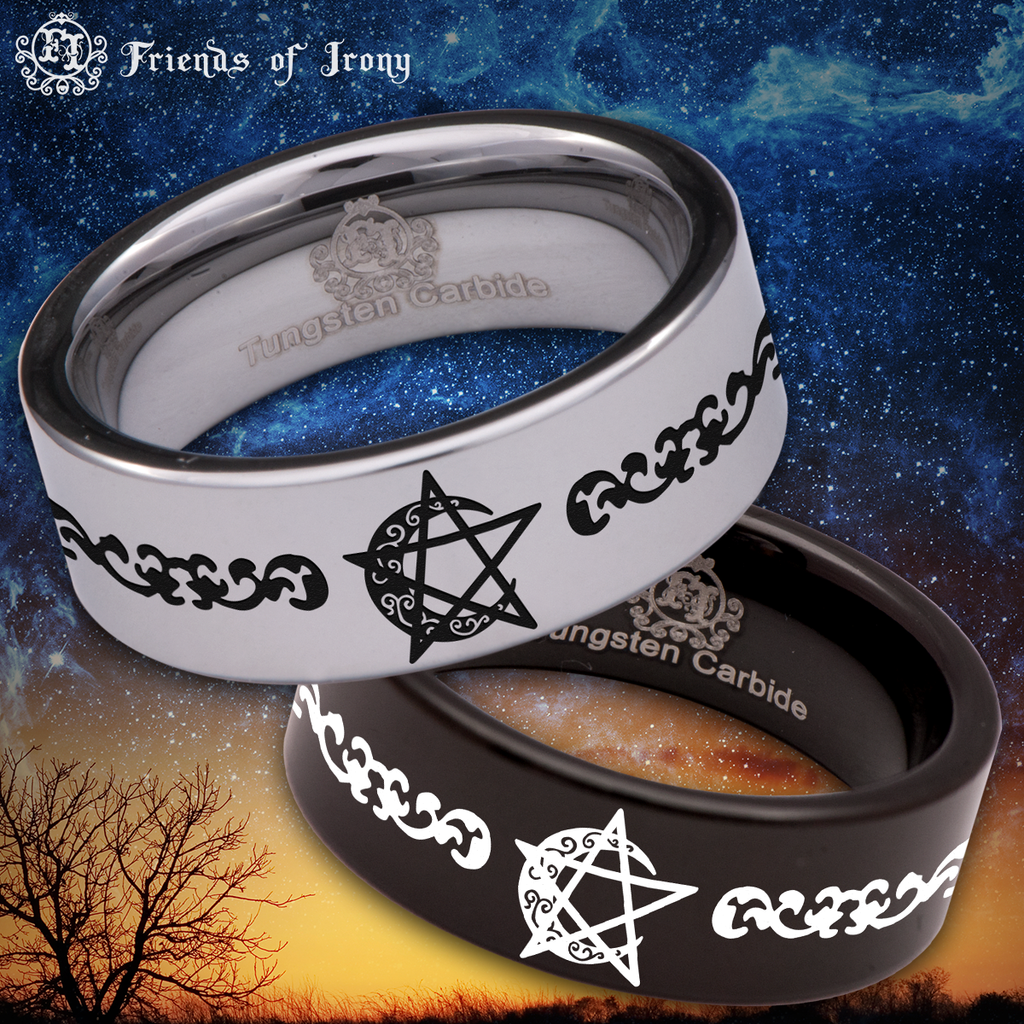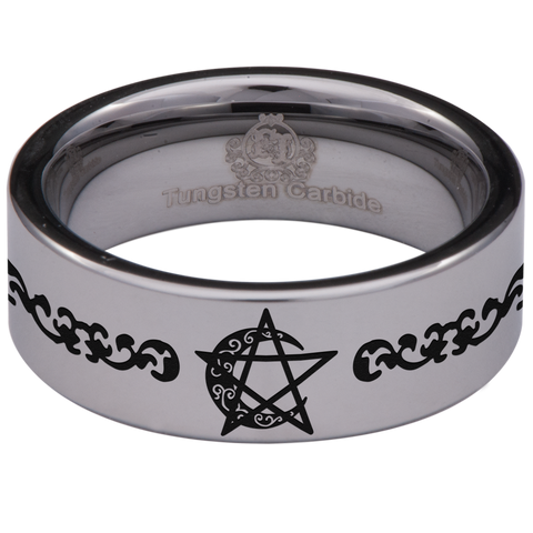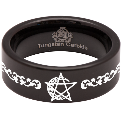 Moon Pentacle Tungsten Carbide Ring