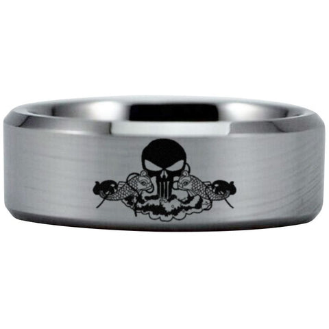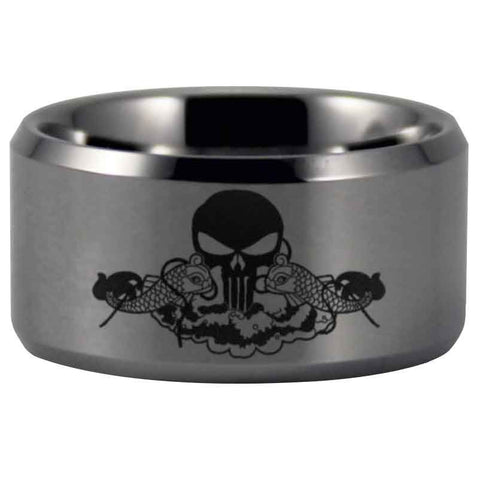 Silver Tungsten Submariner Skull and Dolphin Ring