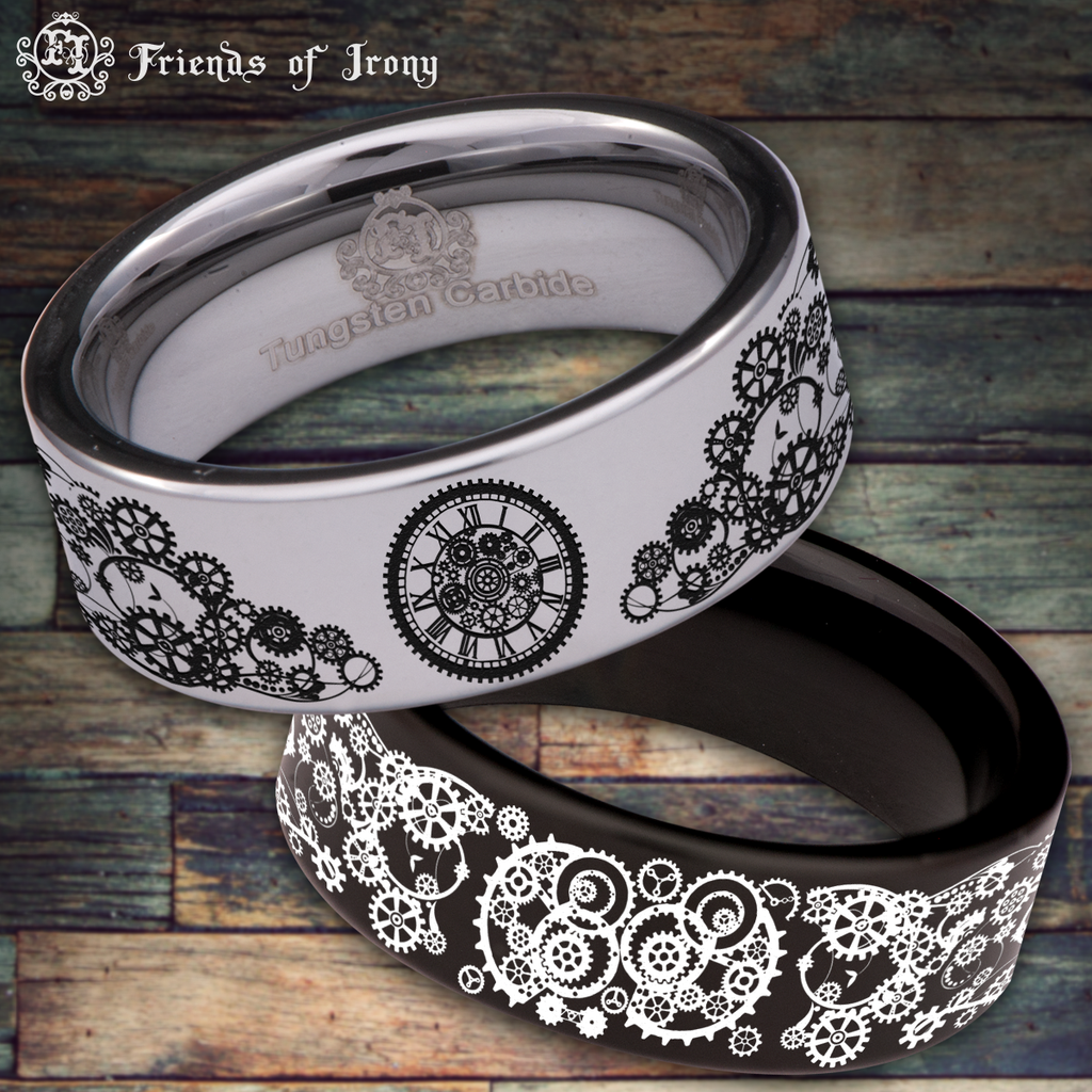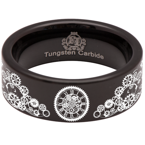 Steampunk Clock Tungsten Carbide Ring