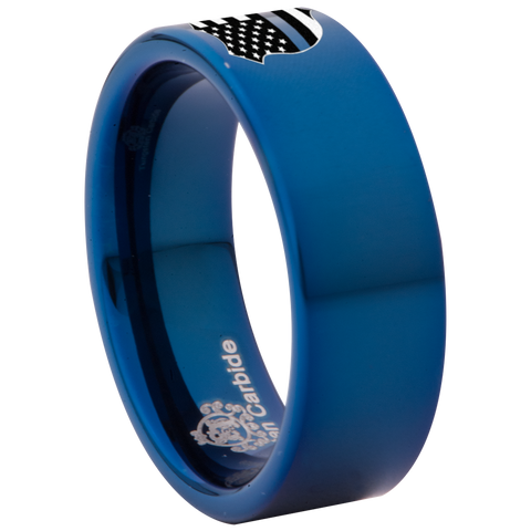 Thin Blue Line Police Flag Badge Tungsten Carbide Ring