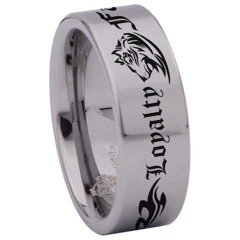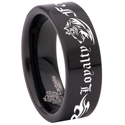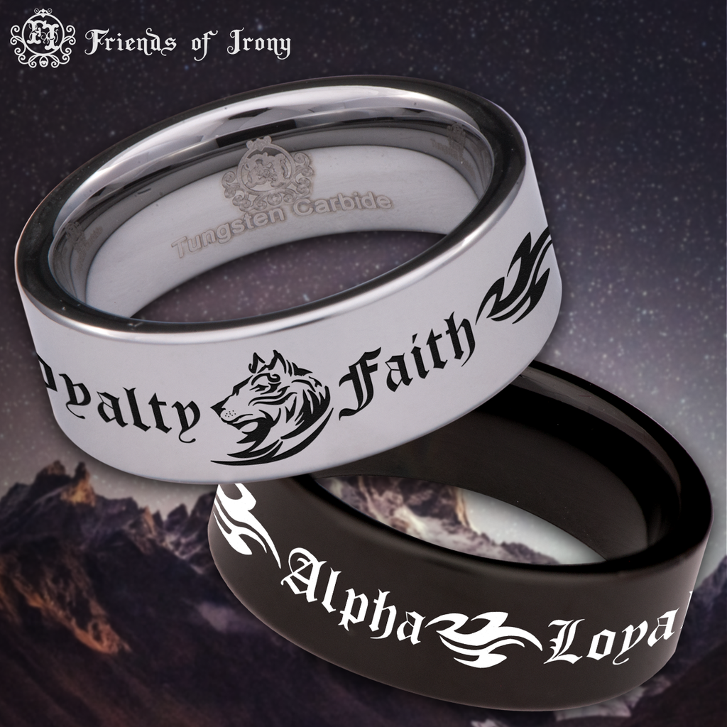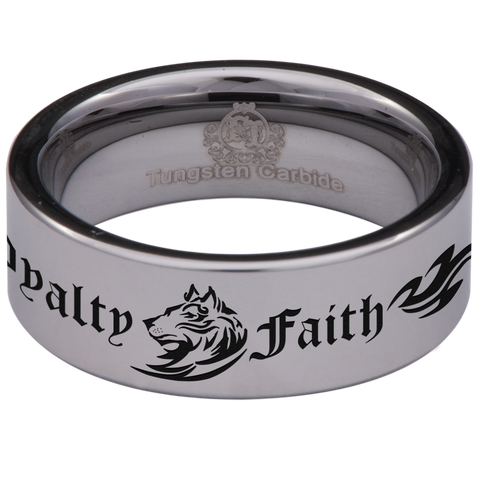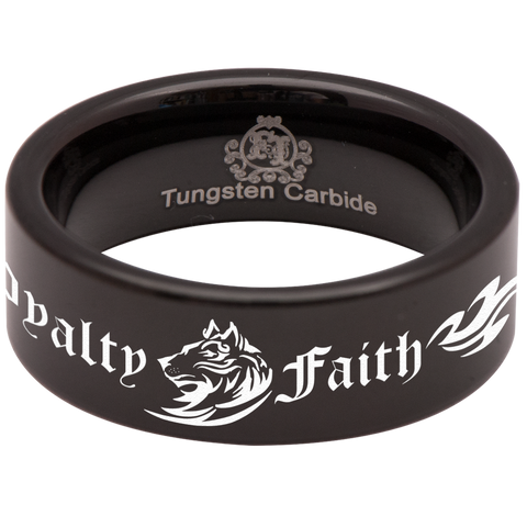 Tribal Wolf + Loyalty Faith Alpha Tungsten Carbide Ring